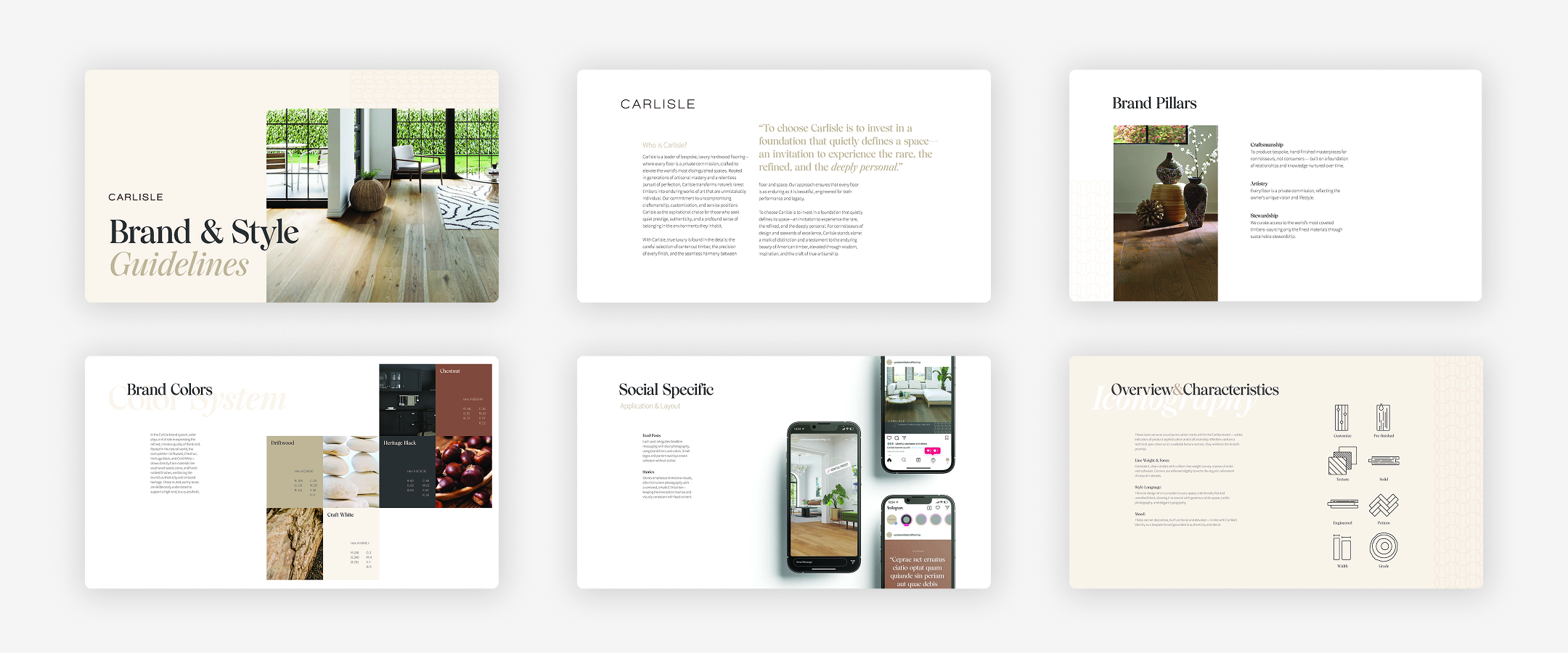 Our objective was to reposition Carlisle as the reference point for luxury flooring—a brand that signals craft lineage at every touch—so architecture and design partners can confidently spec it, homeowners aspire to it, and the business can expand into new high-end markets and scale without eroding margin.